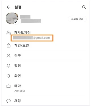 ② 카카오 계정 > 이메일을 확인합니다.