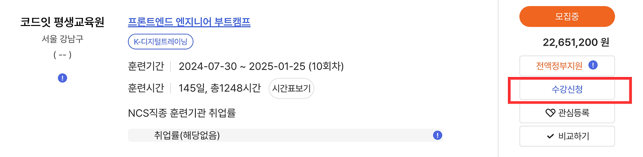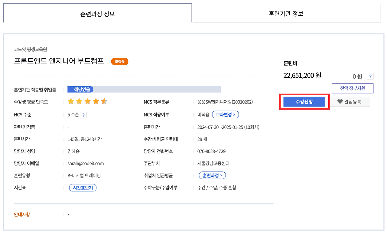 4. 훈련과정 상세 페이지에서 '수강신청' 한번 더 클릭