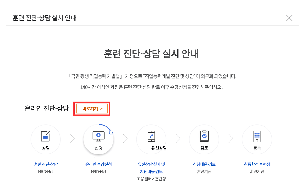 훈련 진단·상담 완료 후 [수강신청] 클릭