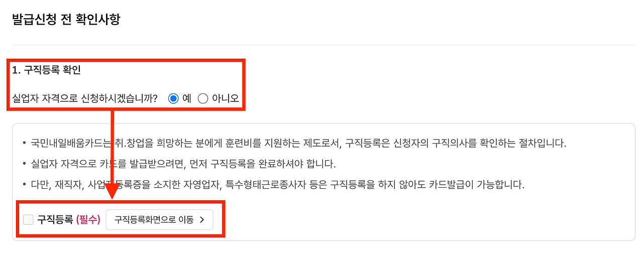 ⚠️ 구직자, 실업자, 대학교 3학년 이상이라면, 워크넷 가입과 구직 등록을 미리 해주시고, 실업자 자격으로 카드 발급을 신청해 주세요.